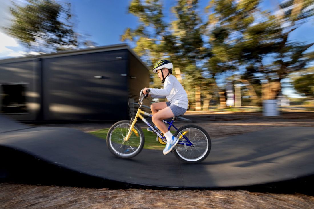 Pump tracks and bike trails feature at many BIG4 holiday parks. Location: BIG4 Bendigo Marong, VIC.