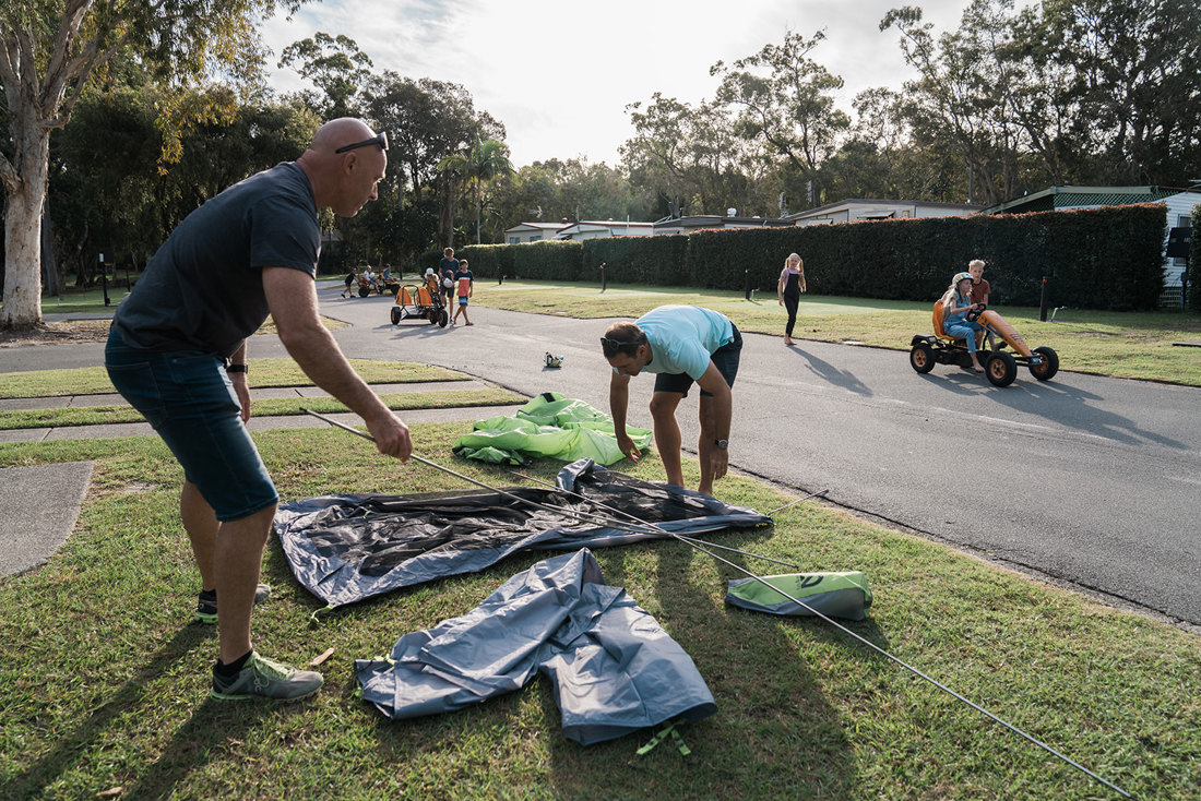 Setting up is half the fun. Location: BIG4 Tweed Billabong, Tweed Heads, NSW.