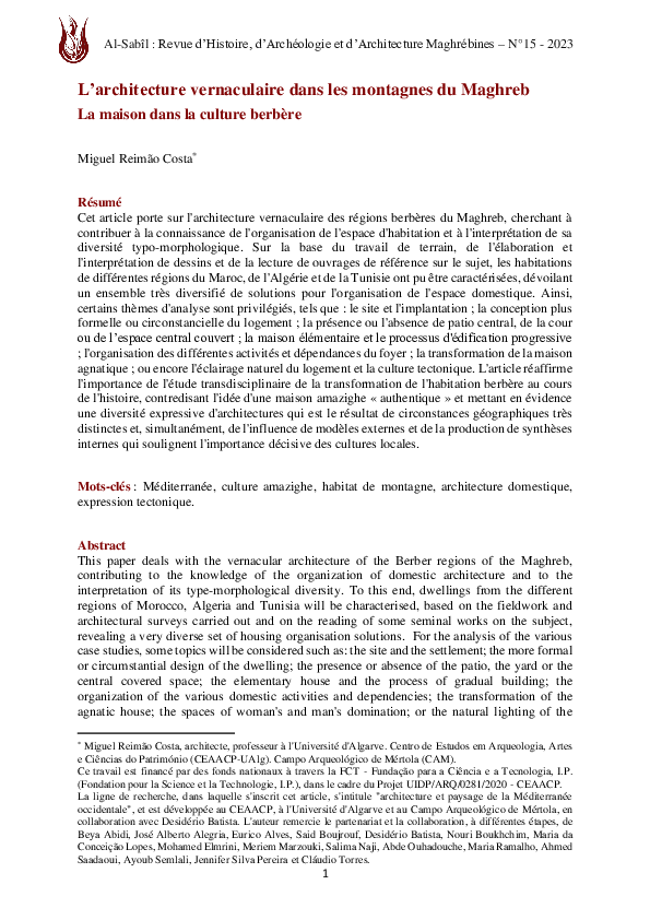 L'architecture vernaculaire dans les montagnes du Maghreb : la maison dans la culture berbèreMiguel Reimão Costa