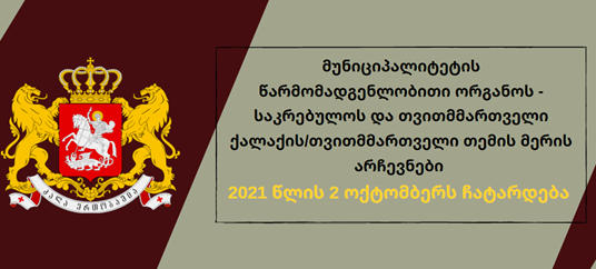 არჩევნების შესახებ დღეს გამოცემული განკარგულებით, პრეზიდენტმა მუნიციპალიტეტის წარმომადგენლობითი ორგანოს - საკრებულოს და თვითმმართველი ქალაქის/თვითმმართველი თემის მერის არჩევნების თარიღად 2021 წლის 2 ოქტომბერი დაასახელა.