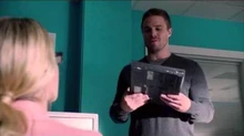 Oliver heads to Queen Consolidated's tech department and finds a woman named Felicity Smoak. After some awkward back and forth, he tells her that he was having trouble with his computer, and hands it over. He says he spilled a latte on it, but she says it's probably the bullet holes. He asks her to salvage anything she can, and she gives a nod to confirm that she'll try.