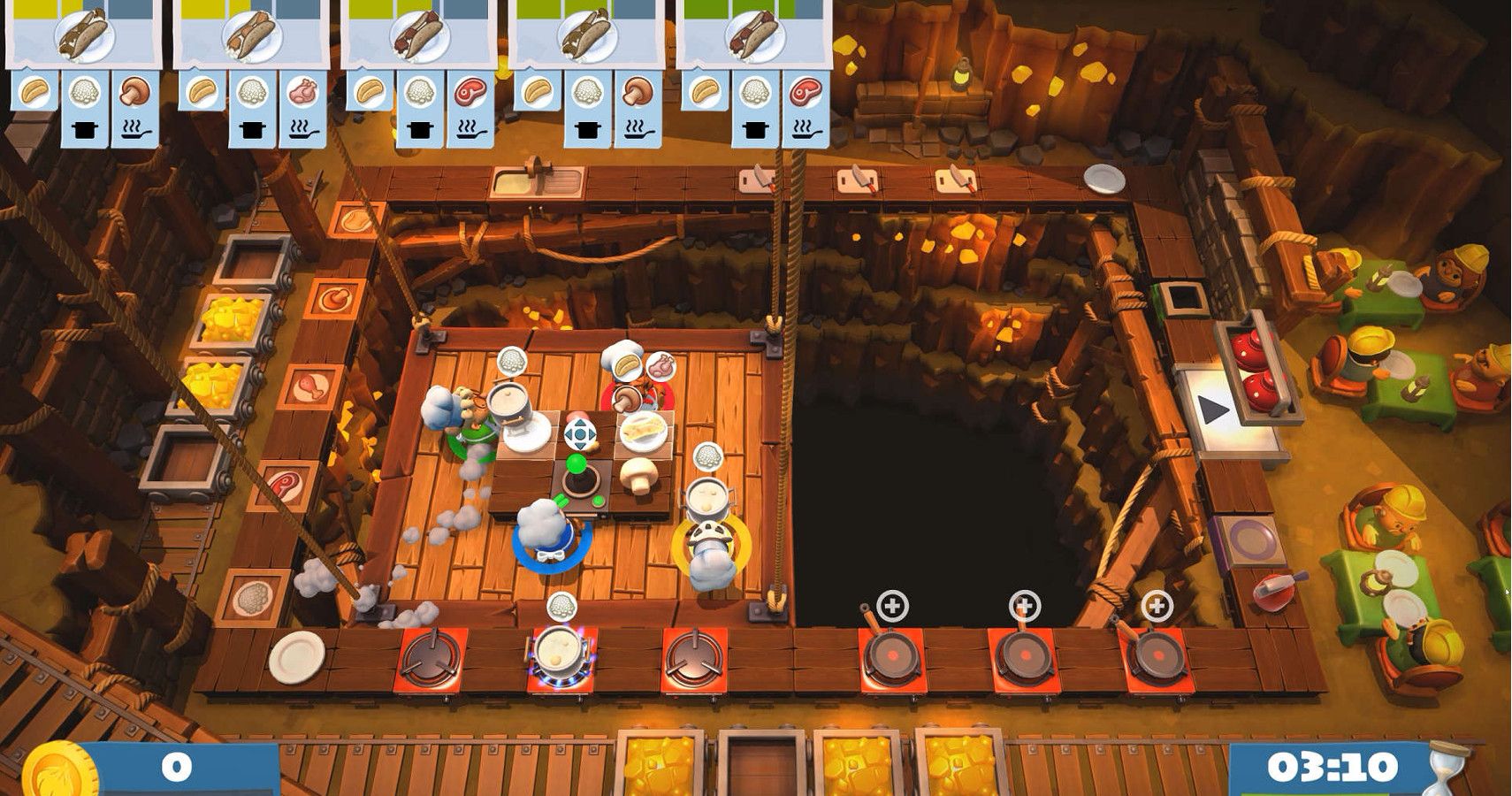 Level up your gaming knowledge with TheGamer, your passport to the world of gaming. Subscribe By subscribing, you agree to receive newsletter and marketing emails, and accept Valnet’s Terms of Use and Privacy Policy. You can unsubscribe anytime.This is when the fun, intense multiplayer gameplay really kicks into high gear. It's a race against the clock, as you'll need to juggle cooking with controlling transports that shift between four segmented platforms. Be methodical, focus on the task at hand, and don't panic. It's usually a good idea to get a backlog of three or four finished dishes ready first, then start handing them off to the player at the drop-off point.