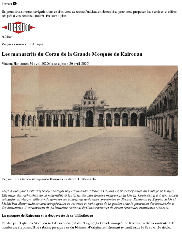downloadDownload free PDFView PDFchevron_rightLes manuscrits du Coran de la Grande Mosquee de Kairouan, coécrit avec Saleh al-Mahdî ben Hammouda, pour le Blog Africa4 de Libération, Avril 2020Eleonore Cellard2020