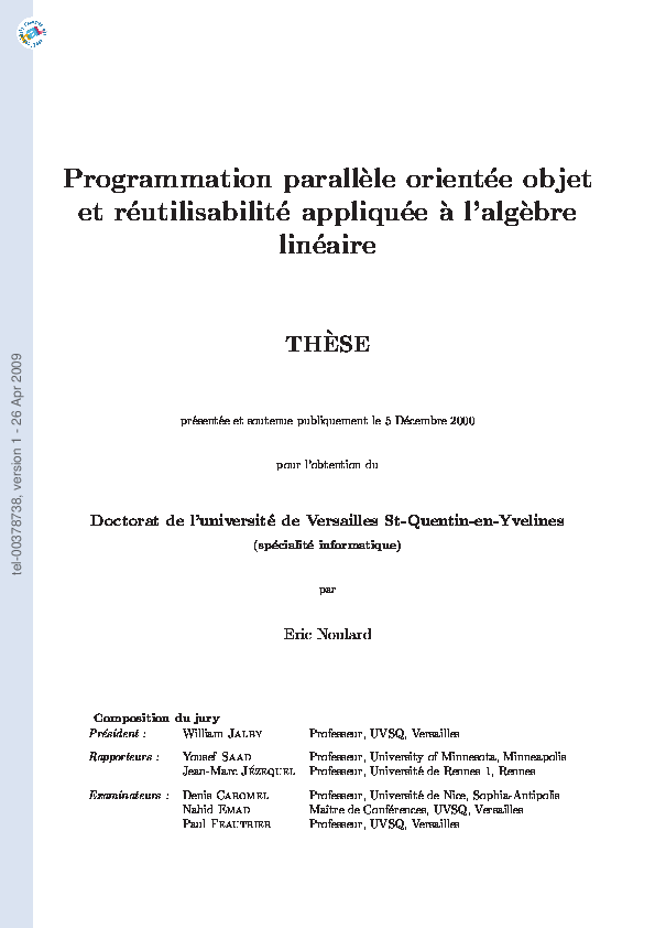 Programmation parallèle orientée objet et réutilisabilité appliquée à l'algèbre linéaireEric Noulard
