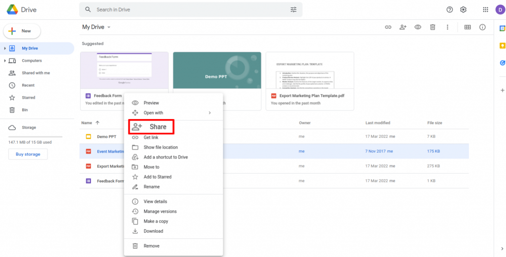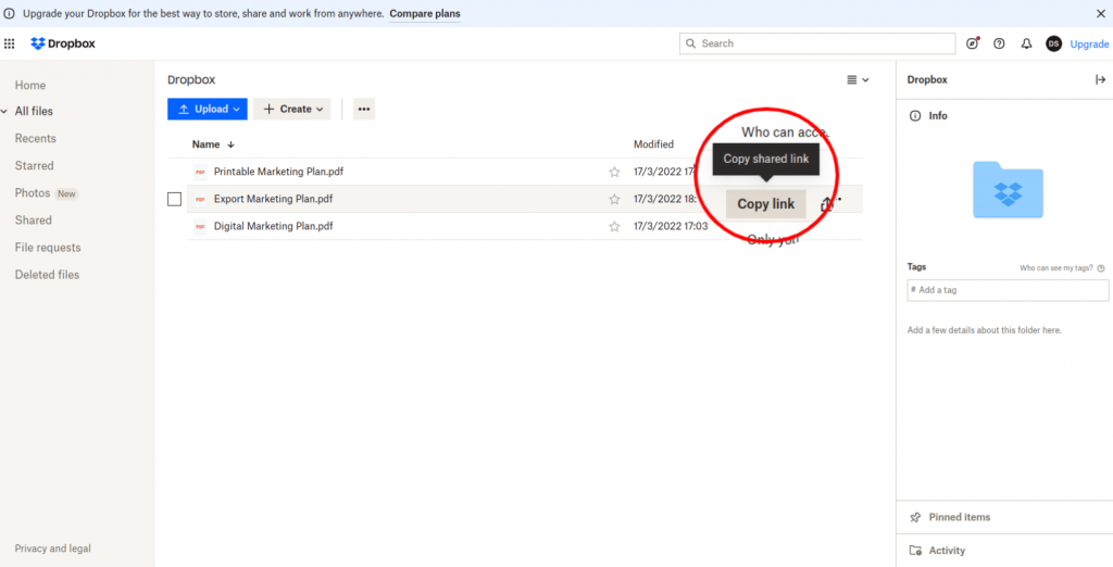 Upload the PDF to a cloud storage service like Google Drive, OneDrive, or iCloud, and then share the PDF with a link. Now copy the link you see; this is your shareable PDF link.