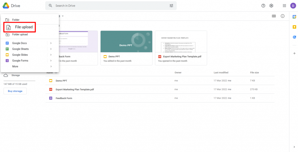 Upload your PDF file by clicking on ‘New’ and then on ‘File upload’.