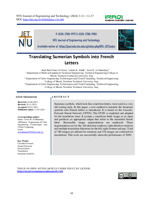 arrow_back_iosTranslating Sumerian Symbols into French Lettersarwahamid78 اروى حامد صالحdownloadDownload free PDFAbstract