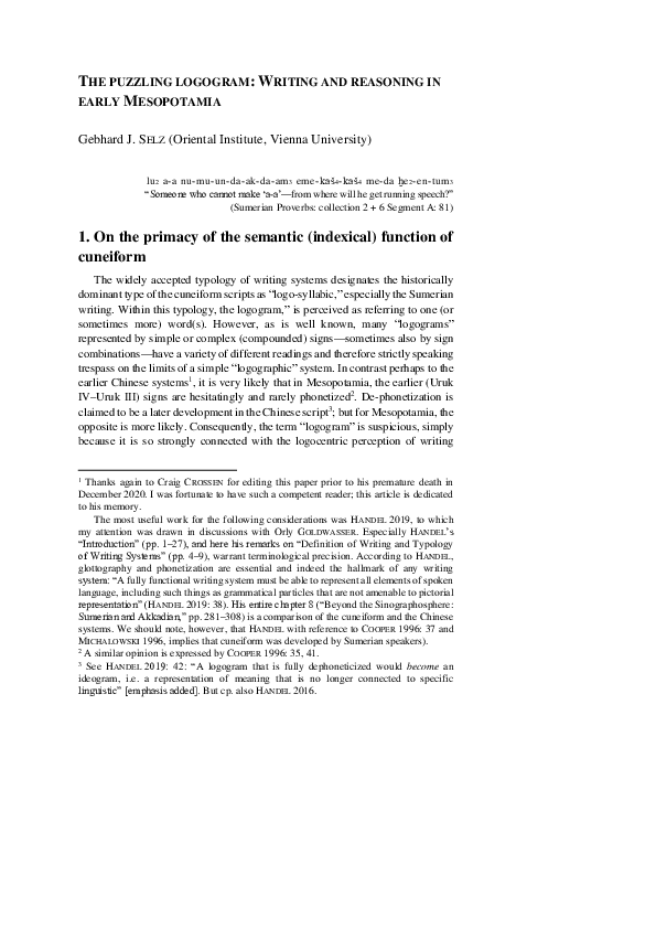 Imre GalambosdownloadDownload free PDF2021. The Puzzling Logogram. Writing and Reasoning in Early Mesopotamia. In: Gösta Gabriel, Karenleigh Overmann & Annick Payne (eds.): Signs – Sounds – Semantics. Nature and Transformation of Writing Systems in the Ancient Near East, Wiener Offene Orientalistik 13. Münster: Ugarit, 27–47.