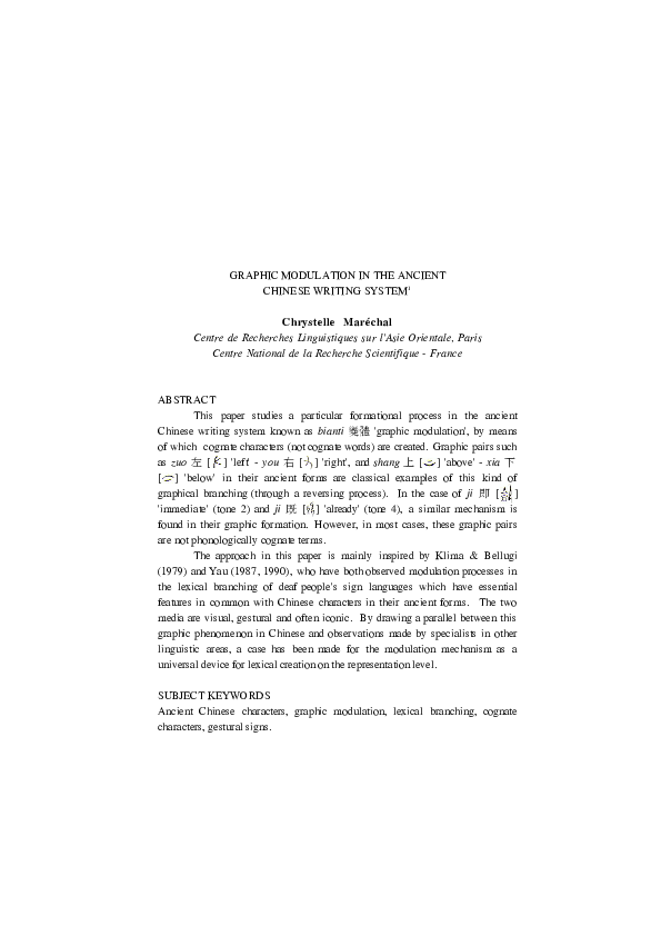 Aleksandr EgorovdownloadDownload free PDFGRAPHIC MODULATION IN THE ANCIENT CHINESE WRITING SYSTEM 1