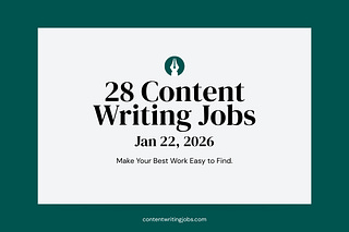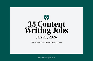 35 Content Writing Jobs (Jan 28 2026)Happy Wednesday, our full list of writing jobs is unlocked for everyone today 🙌Jan 28 • Content Writing Jobs131