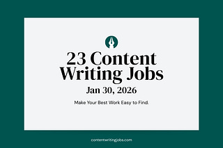 23 Content Writing Jobs (Jan 30 2026)Looking for your next writing gig, or your next big career move? 🚀 In this edition, you’ll find 20+ carefully selected writing jobs spanning remote…Jan 30 • Content Writing Jobs15