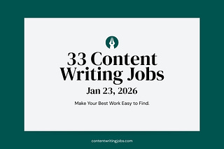 33 Content Writing Jobs (Jan 23 2026)Your daily writing job shortcut is here 🚀 Inside this issue, you’ll find 33 handpicked roles for writers of all kinds: remote, freelance, contract, and…Jan 23 • Content Writing Jobs12