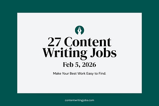 27 Content Writing Jobs (Feb 5 2026)Thursday is for sharing the love, today the full job list is unlocked for all subscribers 💌 Check out a diverse set of writing roles, from medical…Feb 5 • Content Writing Jobs121