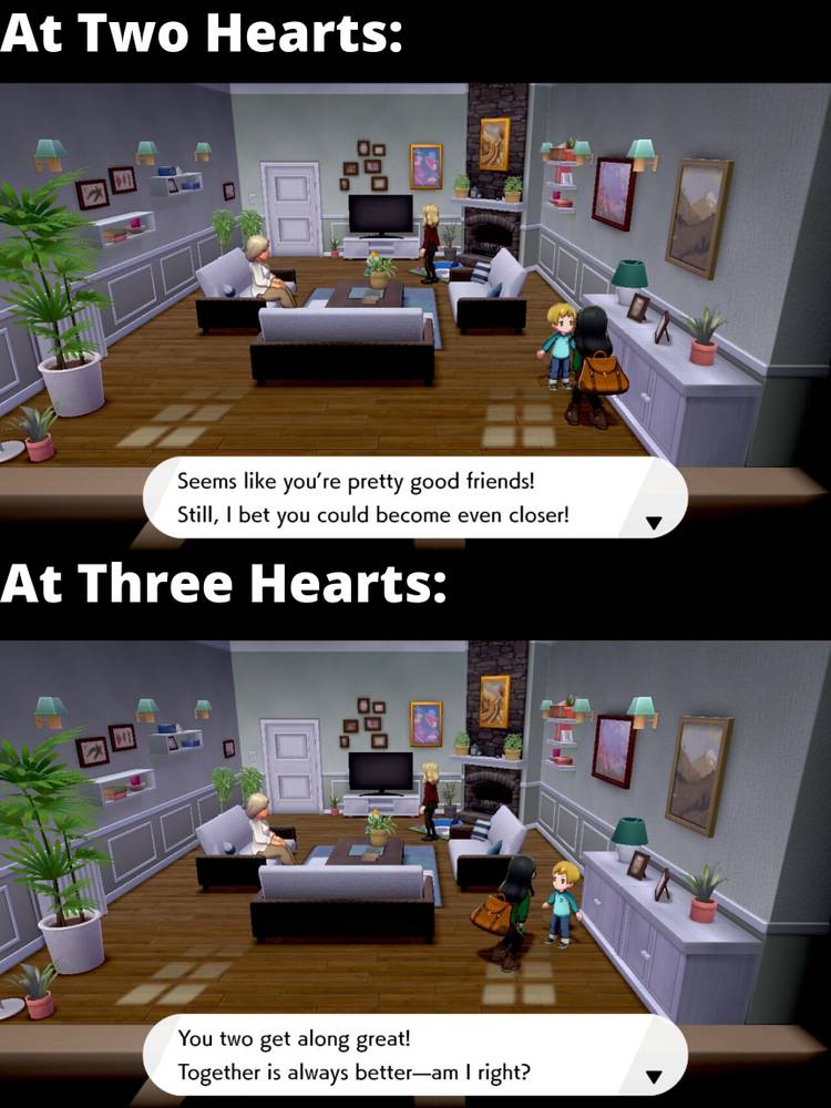 If you want to double-check, there’s also a boy who lives in the house to the right of the first Pokémon center in Hammerlocke who will tell you what your friendship level with a certain Pokémon is. While he doesn’t tell you exactly what the friendship levels are, you can roughly infer them from what he says: