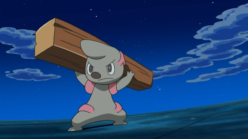 Timburr is also one of these Pokémon. It's said in the Pokédex that Timburr will be ready to evolve when it starts carrying logs three-times its size. It's also said that they carry larger and larger logs as they grow stronger. They probably start to brag about how much they can bench, too.