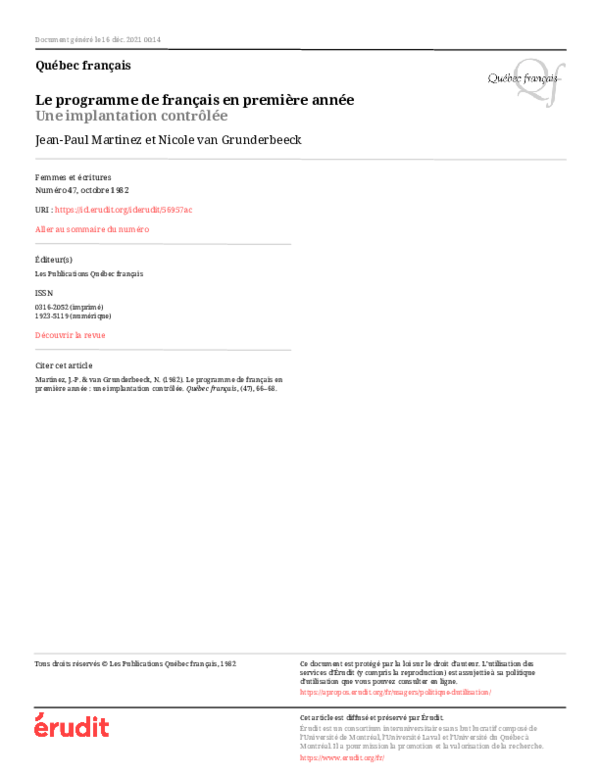 Juliette AmondownloadDownload free PDFLe programme de français en première année : Une implantation contrôlée