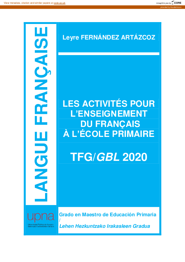 Mohamed Ridha GuedjatidownloadDownload free PDFLes activités pour l'enseignement du français à l'école primaire
