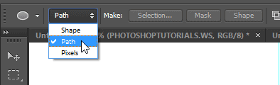 In the options bar located below your Photoshop menu, click on the dropdown menu and select Path.