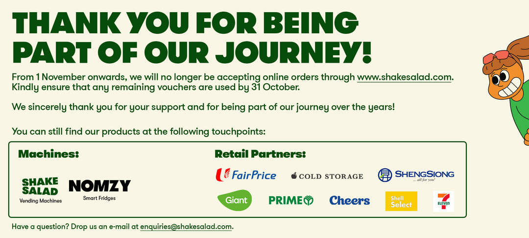From 1 Nov onwards, we'll only no longer be accepting online orders. Find our products in retail stores and our machines!