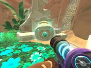 - Located at the The Ancient Ruins courtyard which requires six plorts deposited into their respective statues to open the large Slime Gate for access to the Ancient Ruins: Rock, Tabby, Phosphor, Honey, Boom and Rad Plorts.