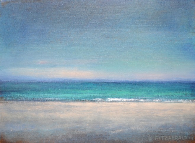 Artists today still use the dry brush technique in a variety of ways to achieve the effect of lighting, texture, and atmosphere they desire. One Principle Gallery artist who makes frequent and beautiful use of the dry brush/scumbling technique is landscape painter Kevin Fitzgerald. Kevin utilizes this technique in many ways: to give a blurred softness to the edges of the fields of color in a piece, to give the wispy impression of clouds, to add an interesting texture, to loosely blend layers of colors, and to give a misty, peaceful atmosphere to the work–just to name a few! “Indian River Morning,” one of the pieces included in Kevin’s upcoming solo exhibition (opening March 20th!) is an excellent example of this technique: