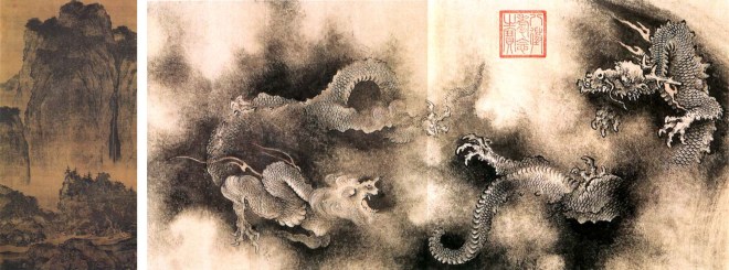 One of the most beautiful and iconic uses of the dry brush technique can be found in ancient Chinese art. Chinese brush painting involves a brush dipped into black or colored inks, and dates very far back. It was during the Song Dynasty (960-1279), however, that Chinese brush painting reached a new level of sophistication and began to incorporate techniques like dry brush painting. The lighter, softer, and more blurred effect produced by using a dry brush allowed for a range of atmospheric effects. The images below are examples from this dynasty: