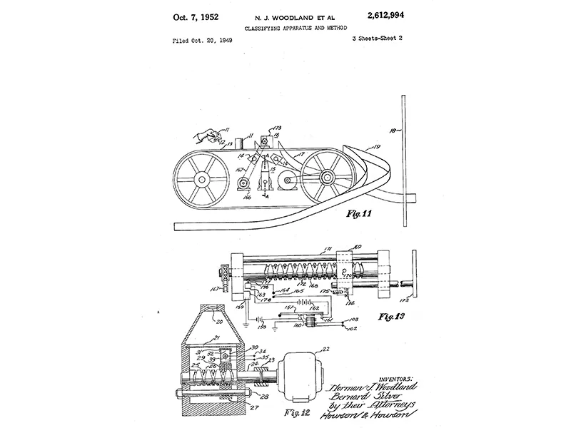 Back in Philadelphia, Woodland and Silver decided to see if they could get a working system going with the technology to hand. They first filed a patent in 1949, which was finally granted in 1952. Although the patent illustrates the basic concept, there is only a smattering of anecdotal evidence about what Woodland and Silver actually built. A crude prototype in Woodland’s own home used a powerful 500-watt incandescent bulb. An oscilloscope was used to "read" the code; the whole thing was the size of a desk. Allegedly, it worked, up to a point. But an objective evaluation judged it to be 20 years ahead of its time. Woodland and Silver had the right idea, but they lacked the minicomputer and, critically, a very bright light with which to "read" the black and white bar code.