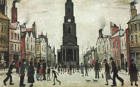 Lowry embraced this simplistic quality resulting in his paintings looking childlike.