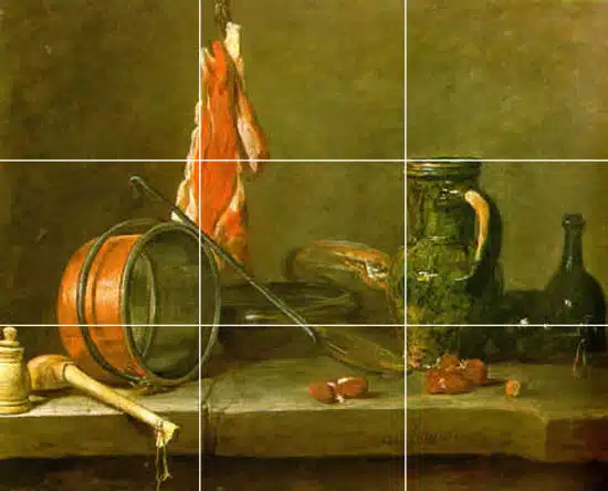 You can see in the Chardin painting above how there are numerous examples of aligning objects within the rule of thirds, the top of the jug aligns with top horizontal line and sits butted up to the vertical line, even the top of the funny little pot on the far left side sits on the bottom horizontal line, to name a few.