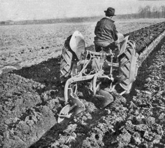 Straight, even furrows are the mark of a good plowman. This was especially evident with hand plowing, and much easier done with a tractor plowing outfit, but it is still a job in which the workman can take great pride. It is usually best to pace off the area to be plowed, set stakes to indicate individual lands, the center of each land, and where to start the headlands. Leave enough room in the headlands to turn the outfit for the next pass. Much more room will be needed for a trailer plow. Headlands can be finished after plowing the lands.