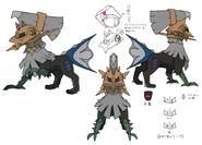 Type: Null may be based on a gryphon or a chimera. It also has many similarities to the dragon of the Ishtar Gate in the city of Babylon, such as the feline and dragon-like legs, dragon-like shape, and crest on its head. The ring surrounding its helmet resembles the one surrounding the torso of Arceus. It may also draw inspiration from Frankenstein's Monster, especially the bolts on either side of its head. Backstory-wise, it may also be based on the EVA units from Neon Genesis Evangelion, both being cyborgs designed to fight bizarre, incredibly powerful creatures (the Ultra Beasts in Type: Null's case, the Angels in the EVA units' case), both having to wear devices that prevent them from losing control of their power (the mask in Type: Null's case, the armor in the EVA units' case), and the three instances of Type: Null created possibly referencing the three main EVA units (Unit-00, Unit-01, and Unit-02).