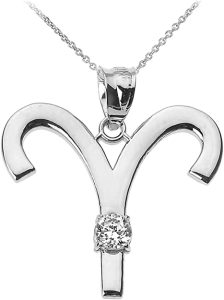 - WHITE GOLD ARIES ZODIAC SIGN APRIL BIRTHSTONE PENDANT NECKLACE – Gold Purity:: 14K, Pendant / Necklace Option: Pendant Only