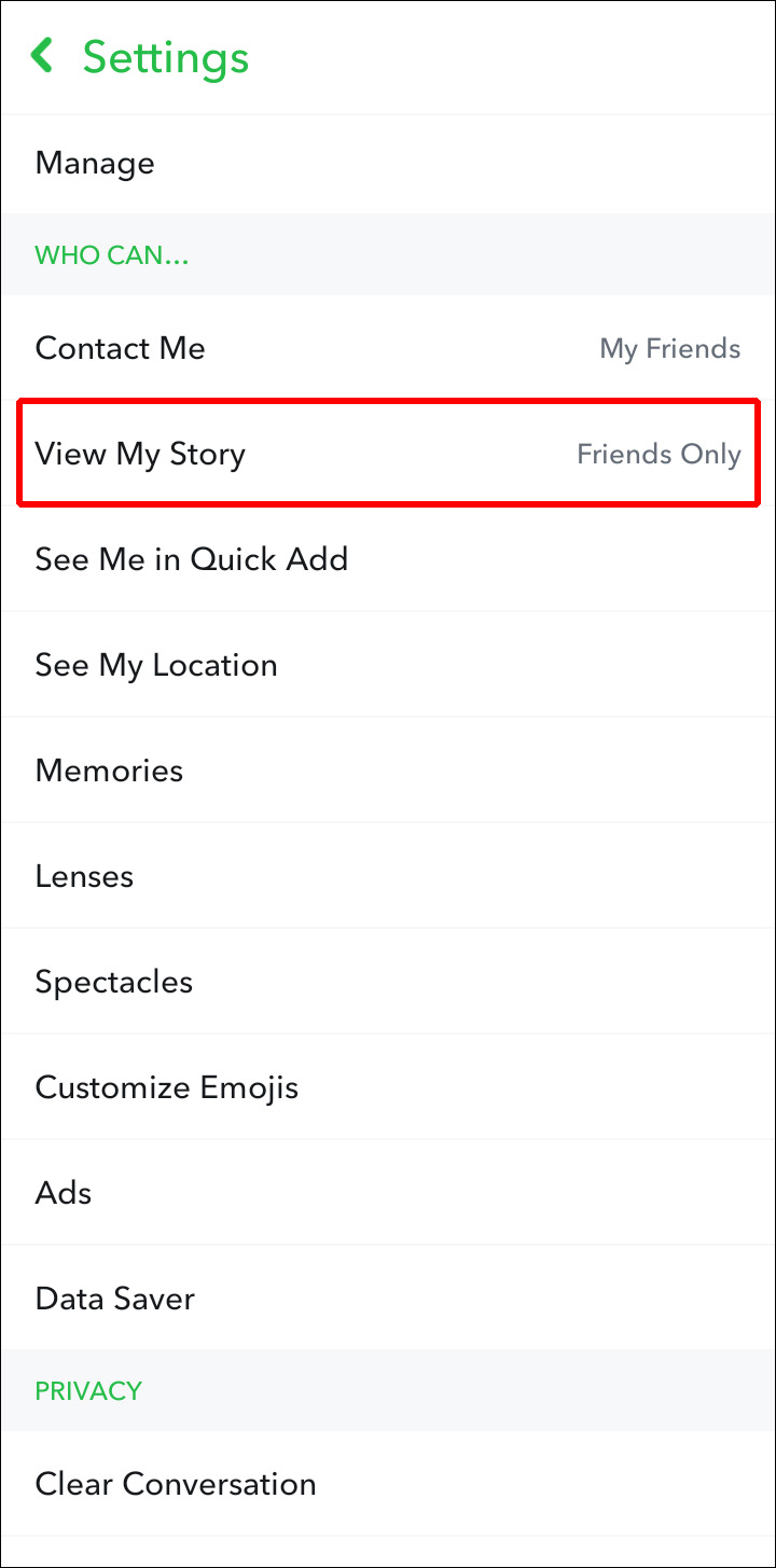 - Scroll to the “Who can” section and tap on View My Story.