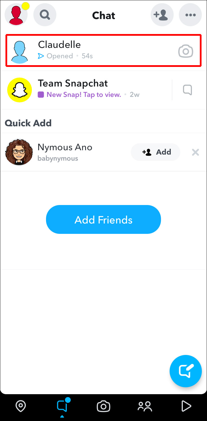 - Launch Snapchat and tap on the Chat icon at the bottom of the screen.