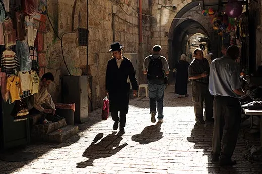 On a cloudless morning, I join historian Meiron for a tour of the Temple Mount. We enter the Old City through the Dung Gate and then arrive at the Western Wall plaza. When the Romans destroyed Herod’s temple in A.D. 70, they knocked the retaining wall down piece by piece. But the stones from the top tumbled down and formed a protective barrier that preserved the wall’s lower portions. Today, hundreds of Orthodox Jews are gathered in devotion before the remnant of that wall—a ritual that perhaps first occurred in the fourth century A.D. and has been practiced continually since the early 16th century, after the Ottoman conquest of Jerusalem.