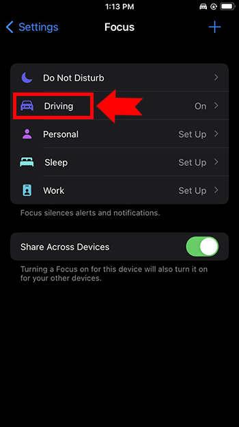 You can set up multiple focus modes on your iOS and give different names to each. This is more for the sake of organization than anything else. As you will see when you turn on Share Focus Status, the name of your Focus Mode will never be shared. Contacts will simply see that your notifications are silenced, but not the reason why.