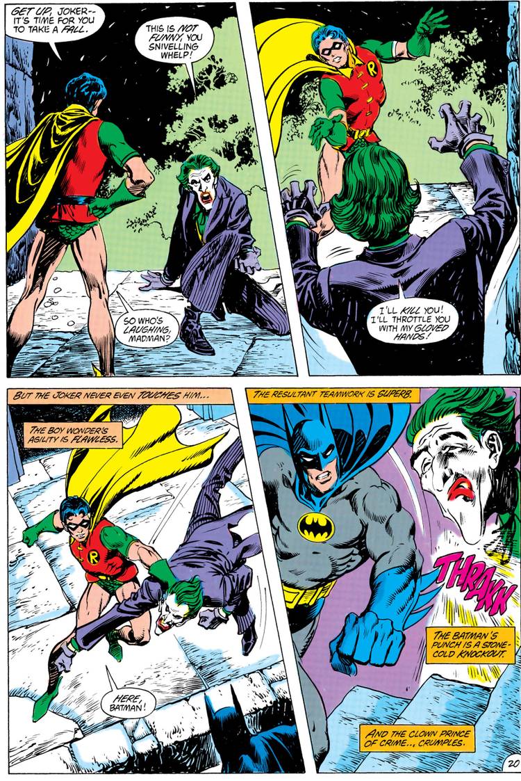 In the next part of the story, Batman #359 (by Conway, Jurgens and Giordano), Robin worried that things were a bit too dangerous for the Todds and Batman tore him a new one for daring to question the plan...