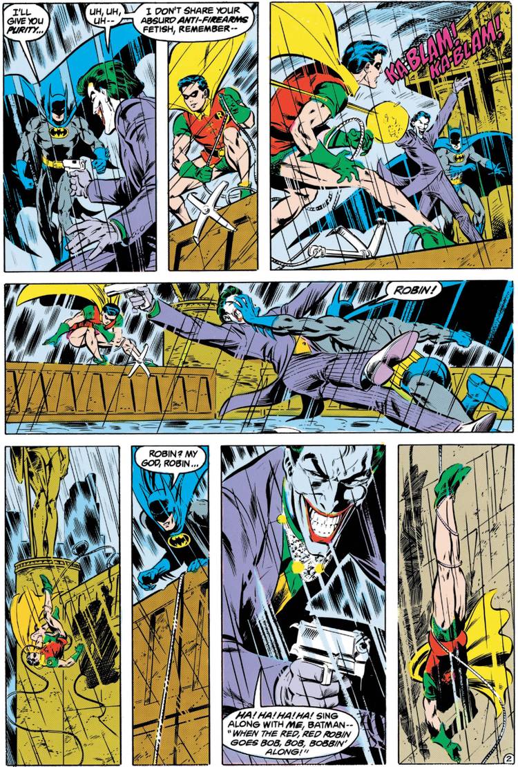 In Batman #408 (by Max Allan Collins, Chris Warner and Mike DeCarlo), Batman and Robin are fighting the Joker when Robin is shot...