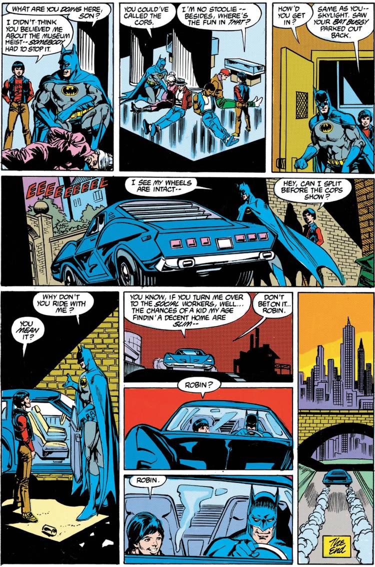 Of course, by the end of that issue, Batman meets a young man named Jason Todd who is trying to rob the Batmobile's tires. By the end of the following issue (by Collins, Ross Andru and Dick Giordano), Batman has decided to make Jason Todd his new Robin...