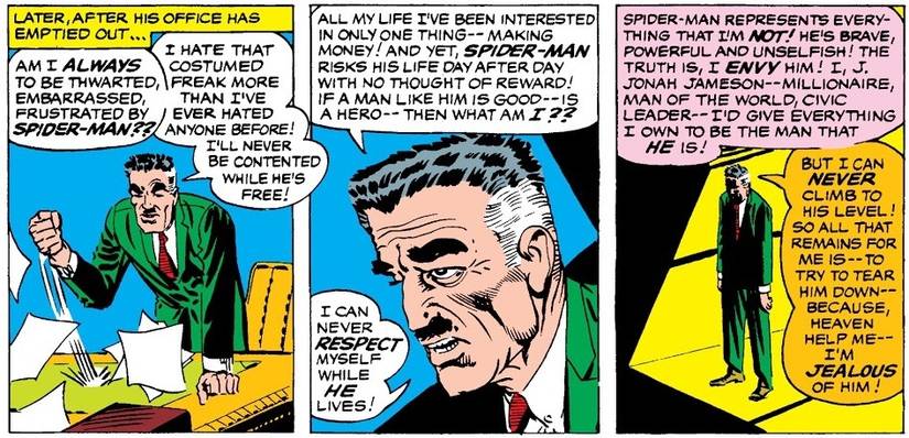 This, for many years, was the definitive explanation, but it is worth noting that this explanation serves to really put Jameson into a negative light. That was okay at the time, as Ditko clearly did not like Jameson and had no problem with casting him as a mere bully, but later writers obviously had different takes on the character.