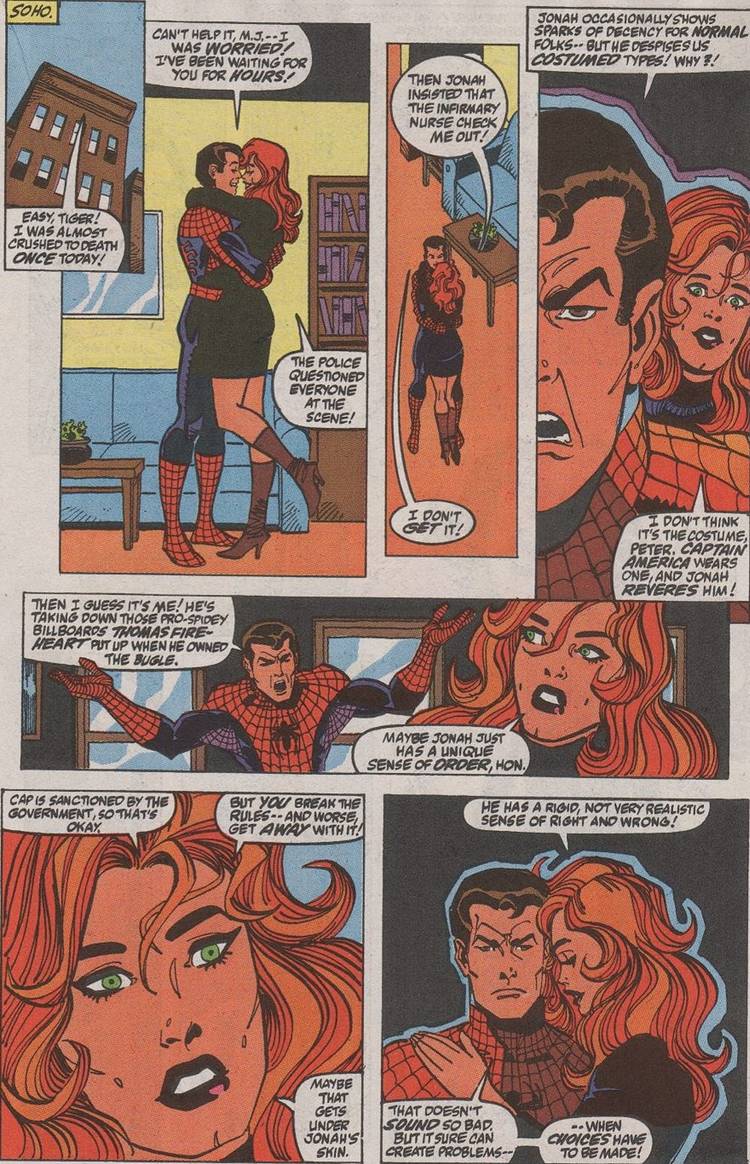 Of course, that flies in the face of Jameson constantly taking the law into his own hands in his attempts to hunt Spider-Man down, but hey, it's a sign that the writers were trying to come up with reasons that made Jameson seem less like a jerk.