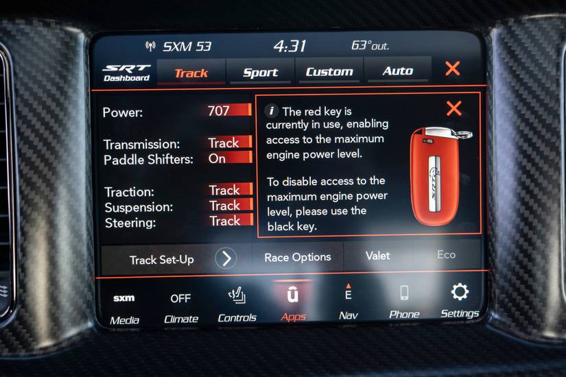 However, we do need to justify that one of the world’s fastest and the most powerful mass-produced gas-powered sedans can be a good daily driver too. The Charger SRT Hellcat Widebody tips the weights at over 4,500 pounds, but it is surprisingly nimble at low speeds. The ride is comfortable, too, however, the suspension is a bit on the stiffer side. But, it’s not something you can’t live with. The steering is not the lightest at city speeds, but it won’t feel like a workout for your arms either. Again, not a deal-breaker.