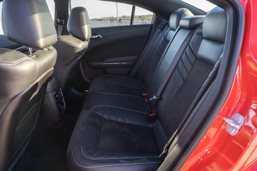 Since the 2021 model, the Dodge Charger Hellcat comes with a widebody as standard. As the name suggests, the Widebody is literally a wider body for your Charger SRT Hellcat. The widebody models are merely wider on the outside, by 3.5 inches, and have wider tracks. It doesn’t make the car any more spacious on the inside. The extra width comes courtesy of the flared fenders and the side skirts. It rides on 20-inch aluminum wheels as standard. The aggressive nose, the deadly red-and-black combination, the lip spoiler on the trunk, the full-width racetrack tail lamps, etc. make this one hell of a looker. But, as I said, it isn’t as attention-seeker as, say, any Porsche model.