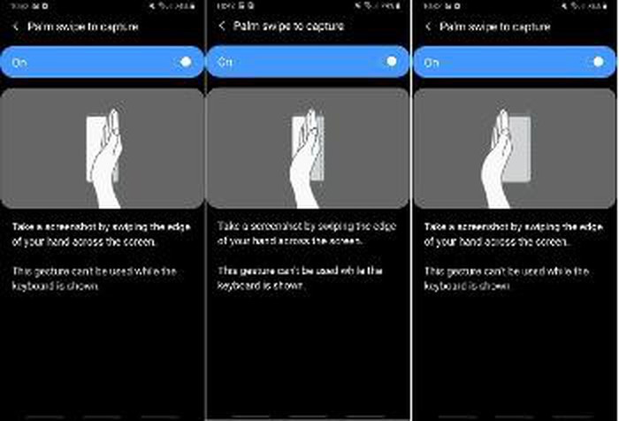 Mở ứng dụng Settings > Advanced features > Motions and gestures. Di chuyển xuống phía dưới và kích hoạt tính năng Palm swipe to capture.