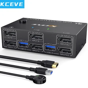KVM Switch 3 Monitors 2 Computers,Triple Monitors KVM Switch DisplayPort + HDMI 3 Ports with 4 USB 3.0 Ports for Keyboard Mouse 2,745,767 ₫ (5.0)