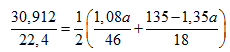 => mC2H5OH = 1,08a (g) ; mH2O = 135 – 1,35a (g)