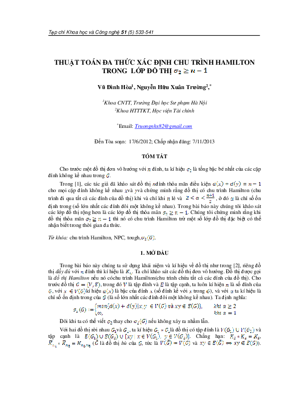 Thuật Toán Đa Thức Xác Định Chu Trình Hamilton Trong Lớp Đồ Thị