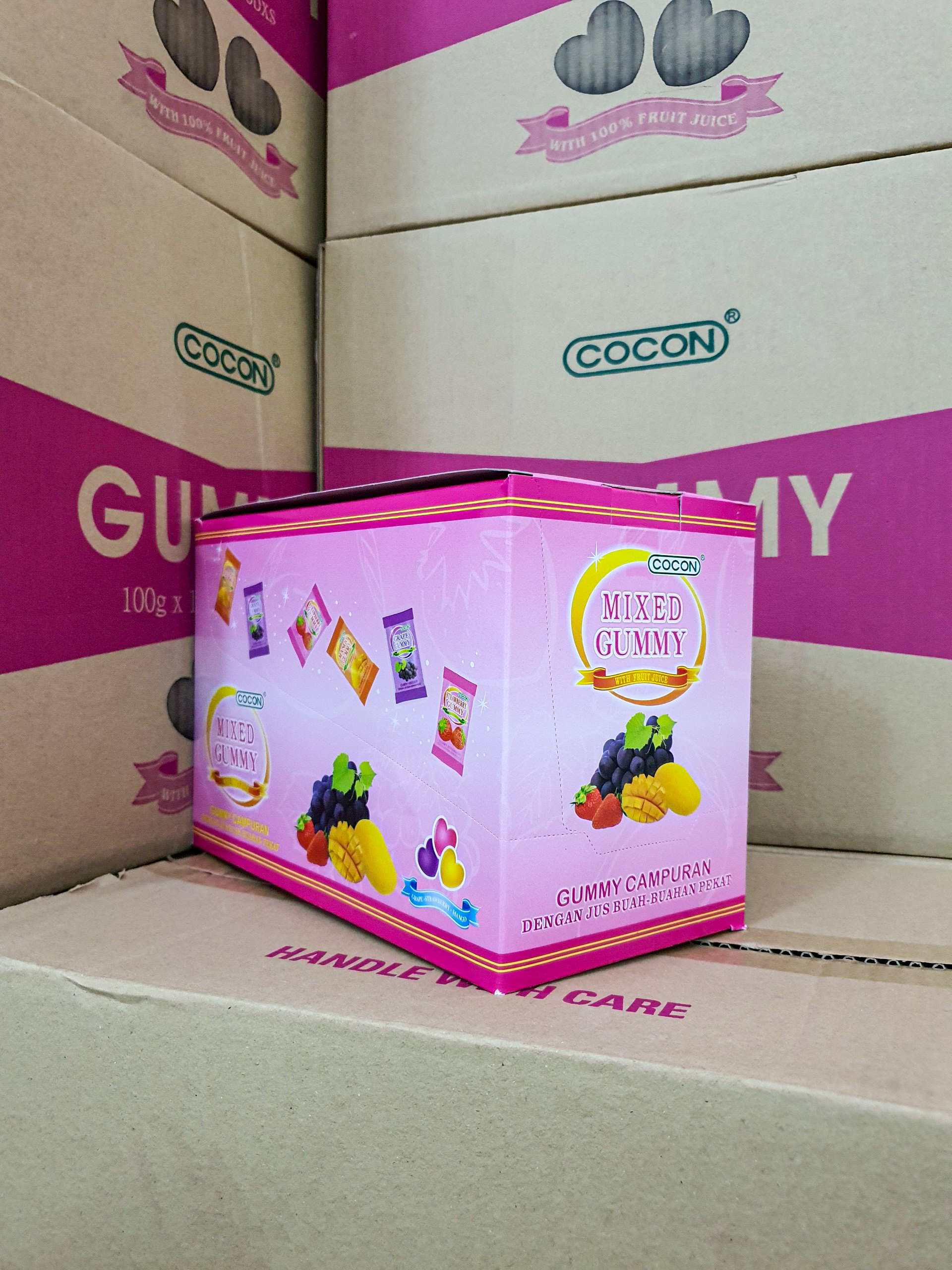 1 HỘP 12 GÓI KẸO DẺO HƯƠNG TRÁI CÂY TỔNG HỢP COCON - COCON MIXED GUMMY WITH FRUIT JUICE (12 Gói 100gr)4.8(9)400.000Sản phẩm đã hết hàngBạn có thể xem các sản phẩm tương tự.Xem Sản Phẩm Tương TựMô tả sản phẩmViên hình trái tim: mềm, dẻo