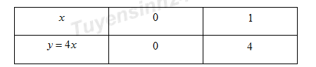 Vậy đồ thị hàm số \(y = 4x\) là đường thẳng đi qua hai điểm \(\left( {0;\,\,0} \right)\) và \(\left( {1;\,\,4} \right).\)