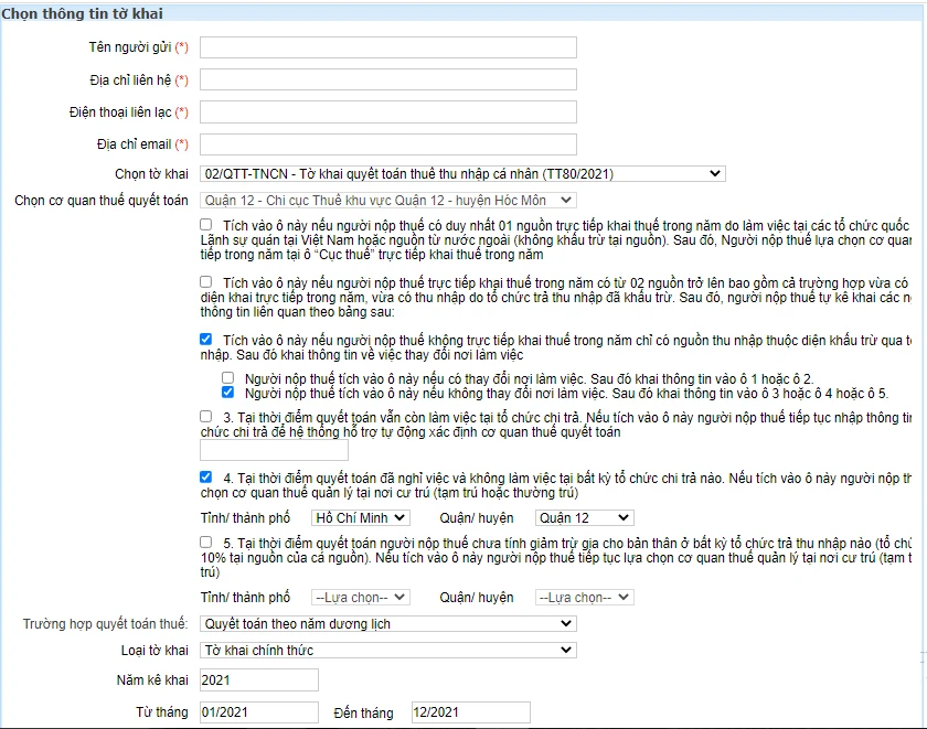 - Trường hợp quyết toán: Chọn Quyết toán theo năm dương lịch.
